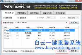 2、確定映像文件路徑是否是你下載的自帶有360軟件的系統文件,如果正確就點擊執行。然后會提示是否將系統還原到C盤。點擊確定即可。
