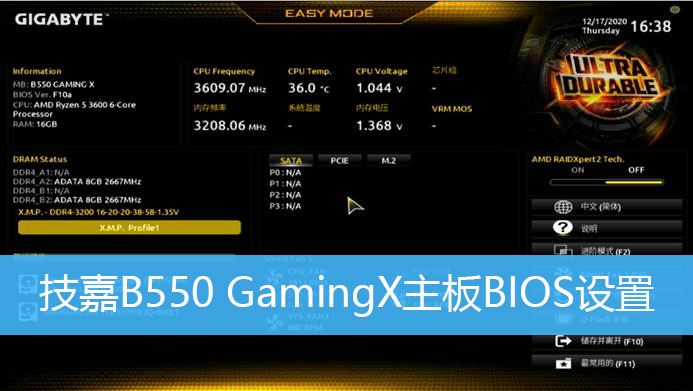 技嘉B550 GamingX主板BIOS設置