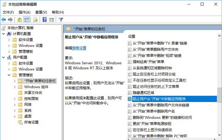Win10專業版家庭版有什么方法可以禁止用戶從開始菜單卸載程序