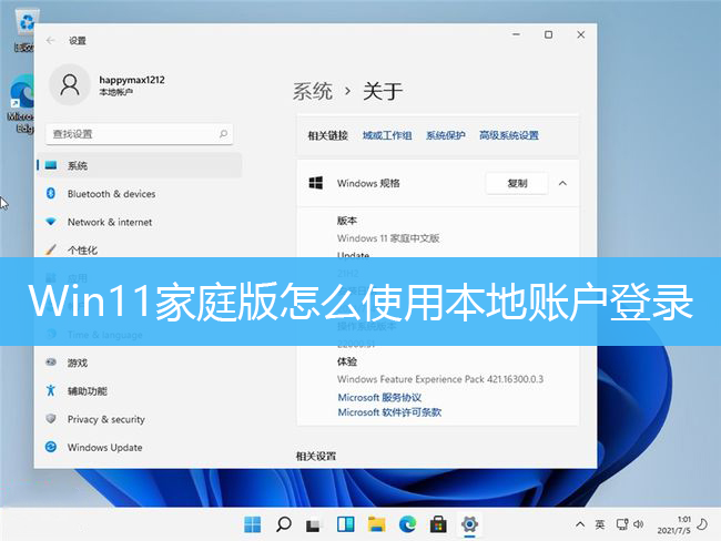 2021-07-06 Win11,家庭版,本地賬戶登錄,微軟登錄