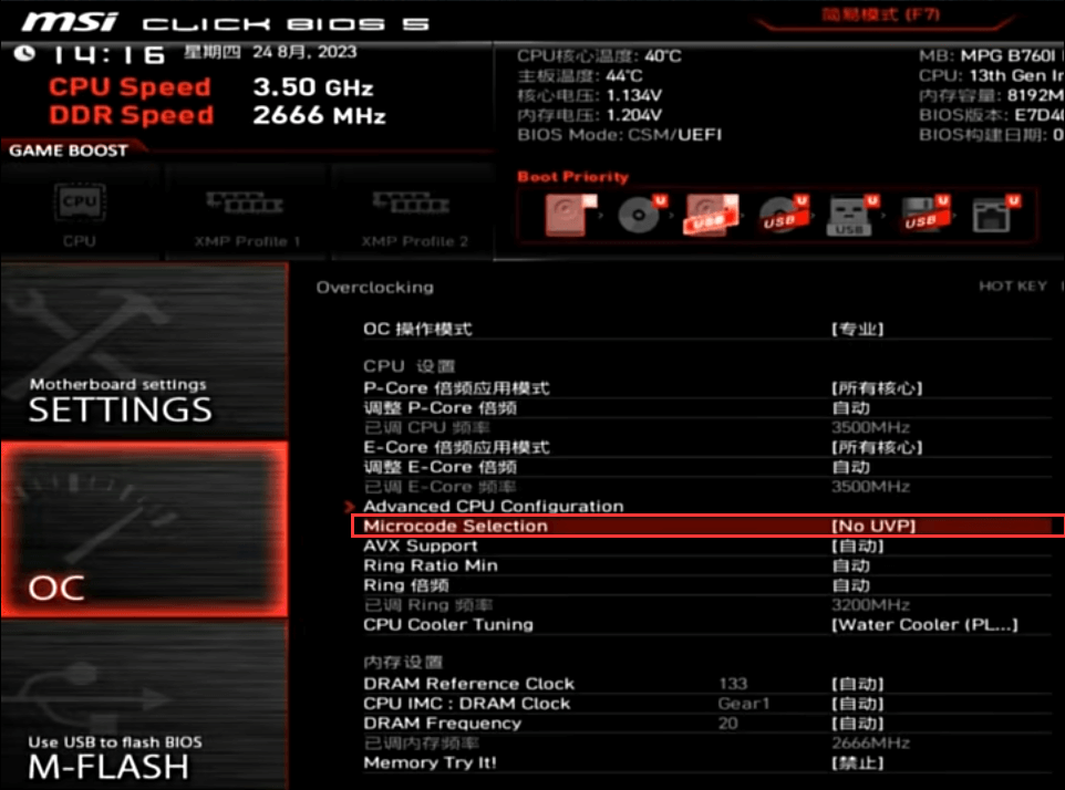 2023-12-26 微星主板,BIOS設置,B760主板,降壓教程