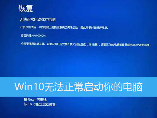 Win10系統出現問題,導致電腦無法啟動,并且 提示恢復,無法正常啟動你的電腦,藍屏