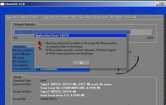 使用ghost重裝Win7系統提示