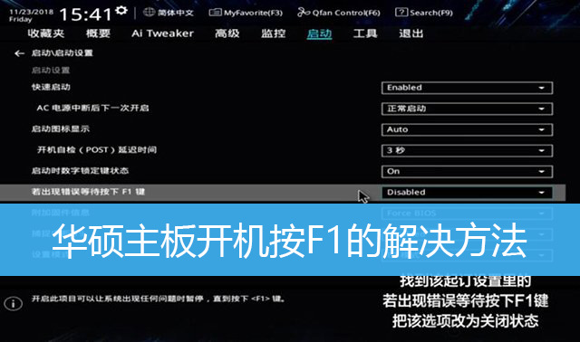 使用華碩主板裝機的用戶,近期遇到了個問題,電腦每次開機的時候,都要按F1才可以
