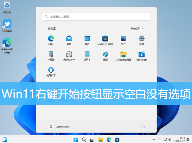 Win11系統中,有用戶反映右鍵點擊開始按鈕時顯示空白沒有任何選項,本文將介紹解決