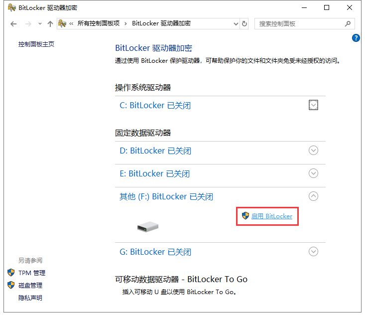 Win10使用BitLocker驅動器加密