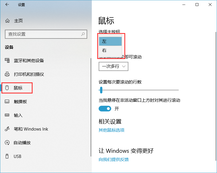 Win10切換鼠標主要和次要按
