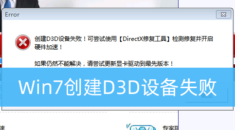 有些使用Win7系統玩游戲的用戶,還沒開始玩,就遇到了 Error錯誤提示,創建D3D設備失敗