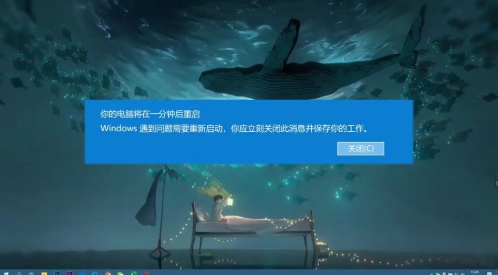 2020-11-03 一分鐘后重啟,Win10開機桌面